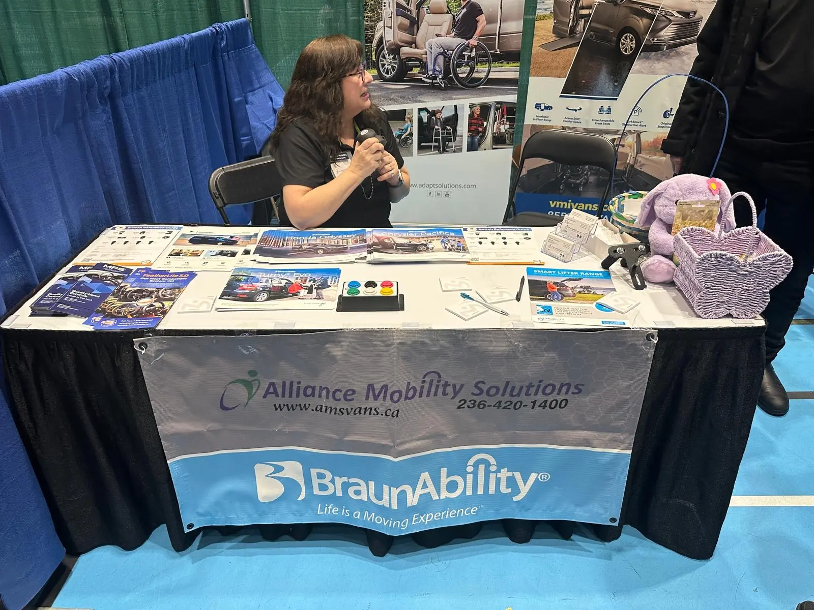 At our booth, visitors were able to learn more about the mobility vehicle solutions we provide, including wheelchair accessible vehicles, hand controls, transfer seats, lifts, and other adaptive driving equipment. Our team also demonstrated how these technologies can be customized to fit each client’s unique needs, helping them regain independence and confidence on the road.